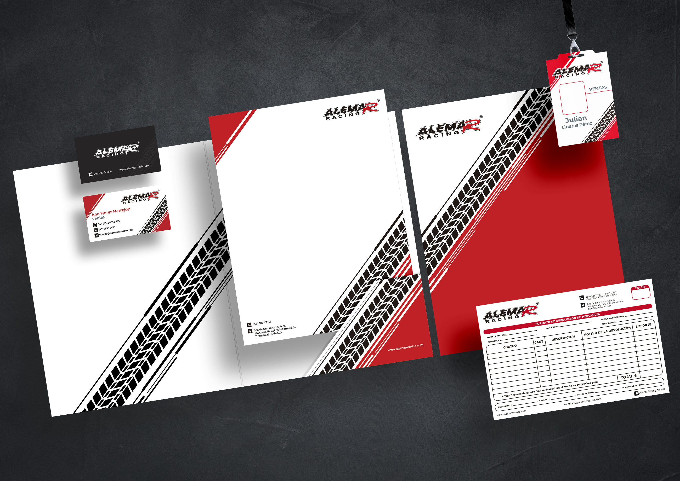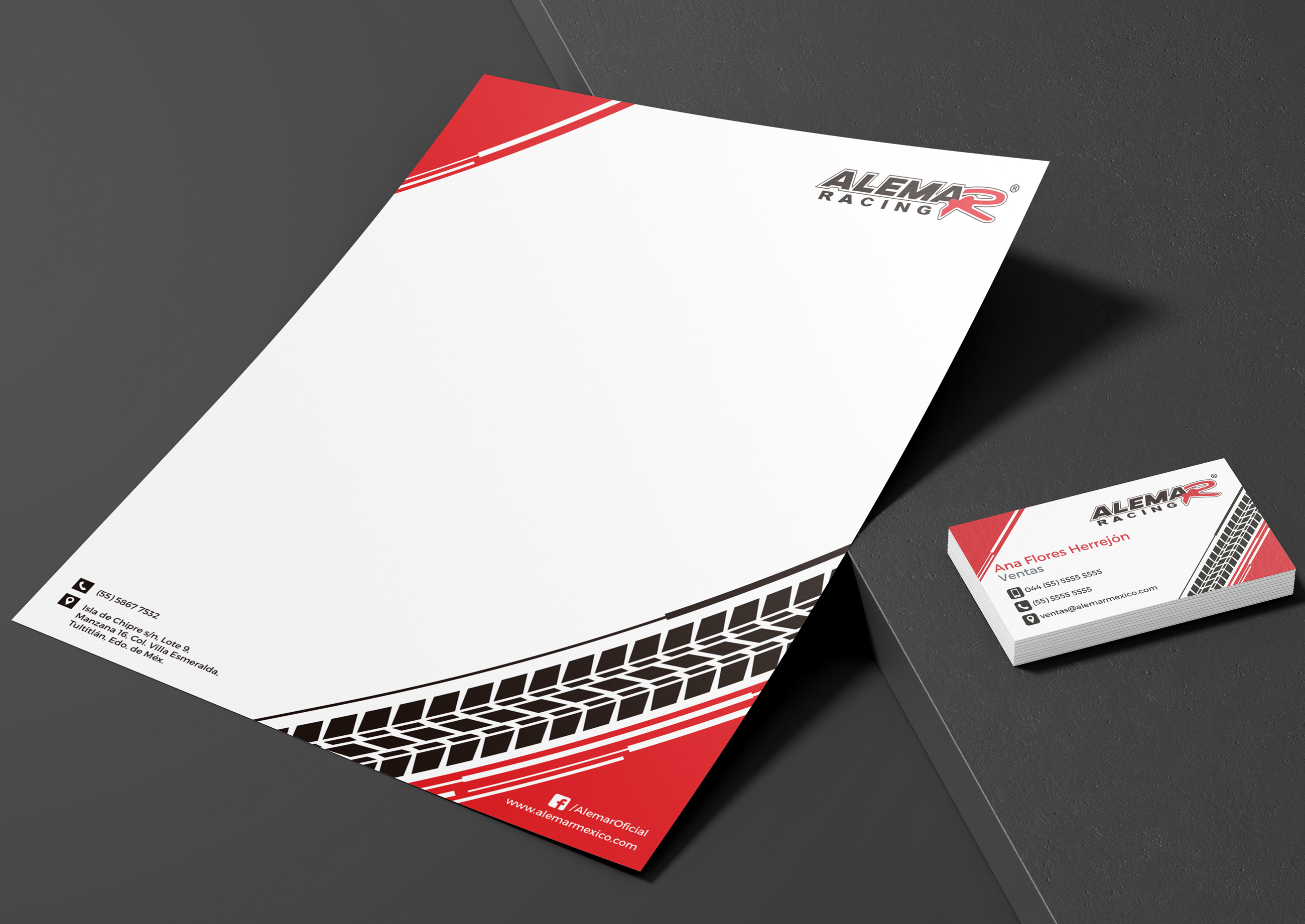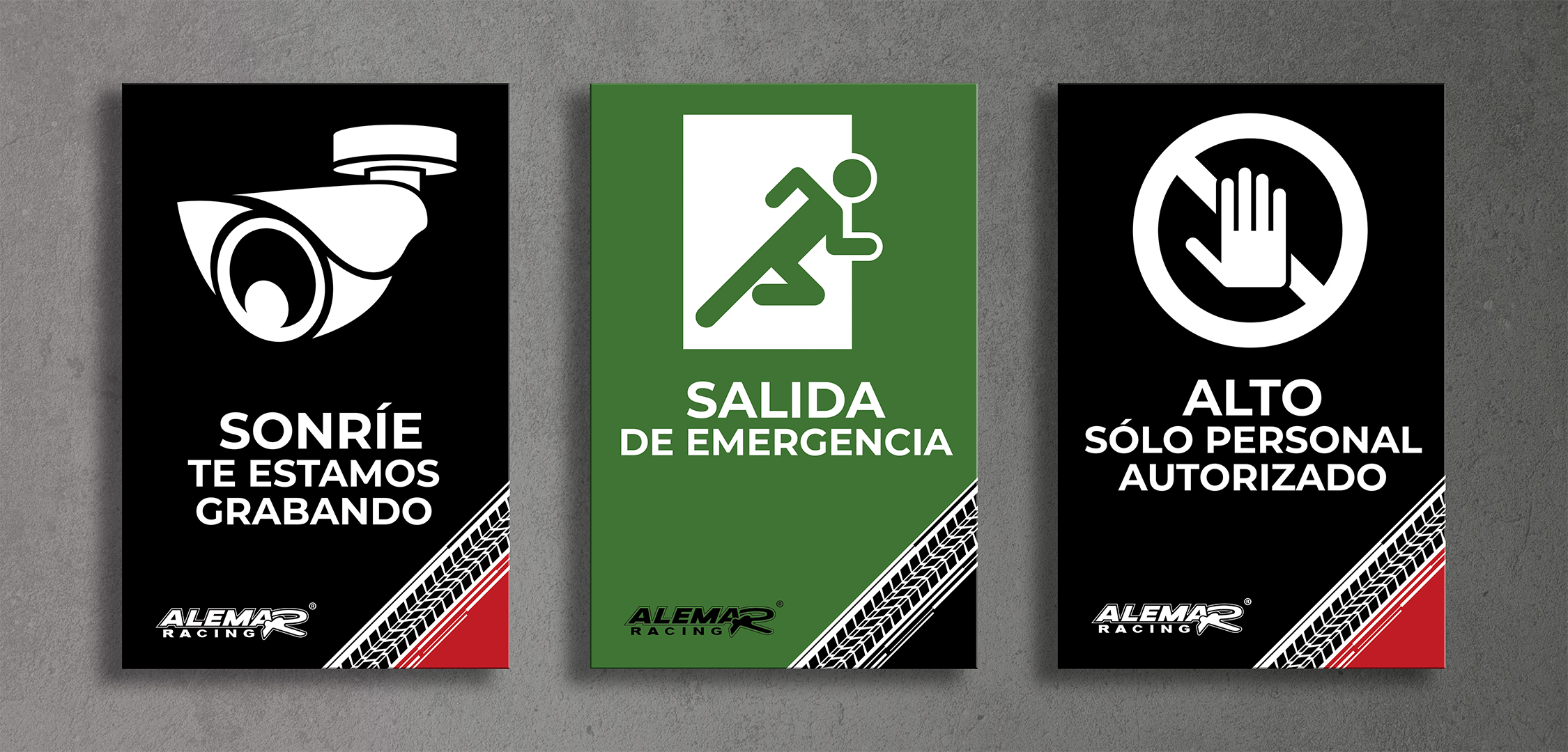 Con ALEMAR RACING tuvimos la oportunidad de trabajar en varios proyectos como la vectorización de su logotipo, creación de su manual de identidad corporativa, tarjetas de presentación y la señalética para sus instalaciones.