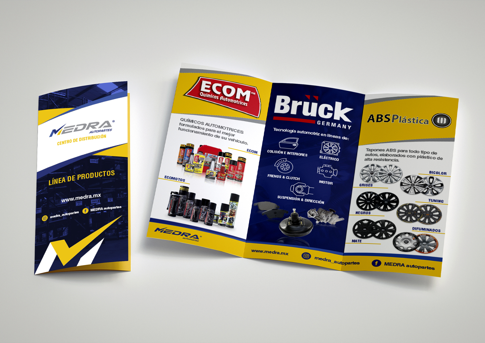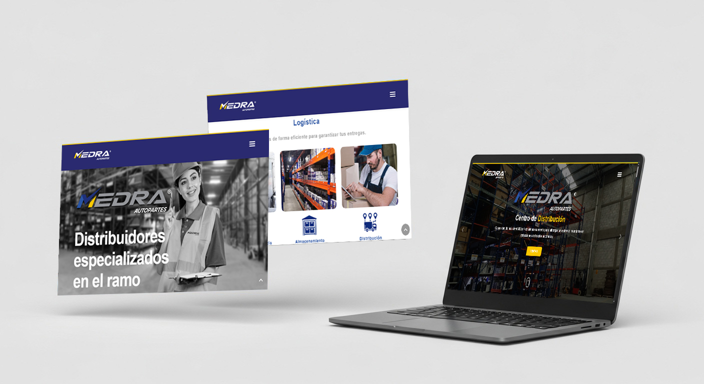 Para MEDRA AUTOPARTES diseñamos el logotipo de la empresa, así como su página Web, elaboramos un folleto que muestra sus principales productos y servicios y se diseñaron tarjetas de presentación.