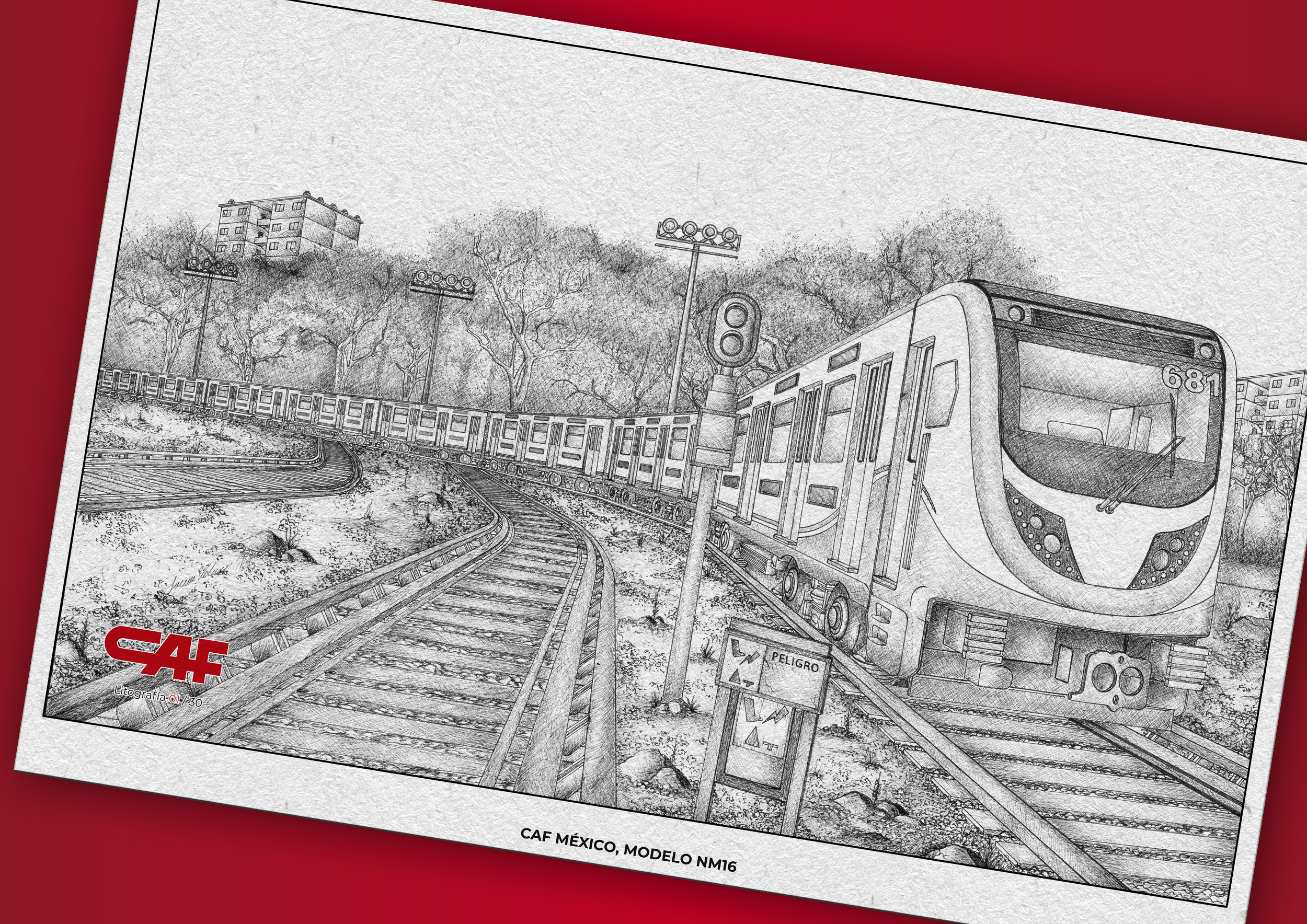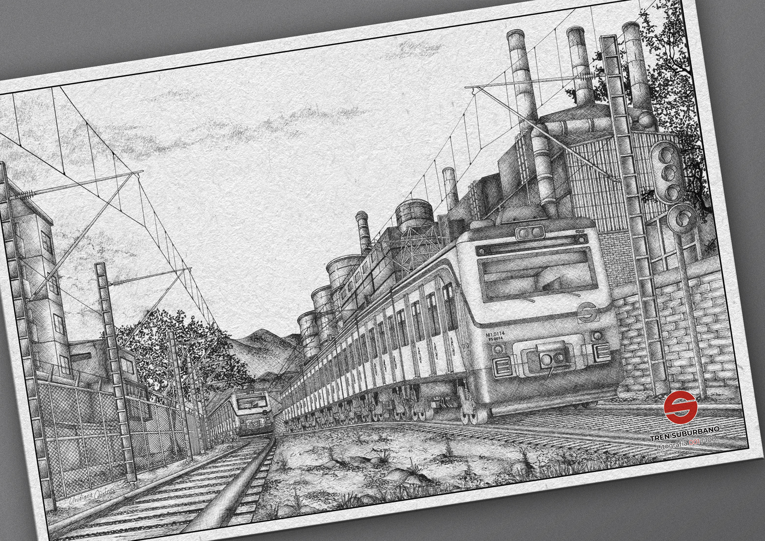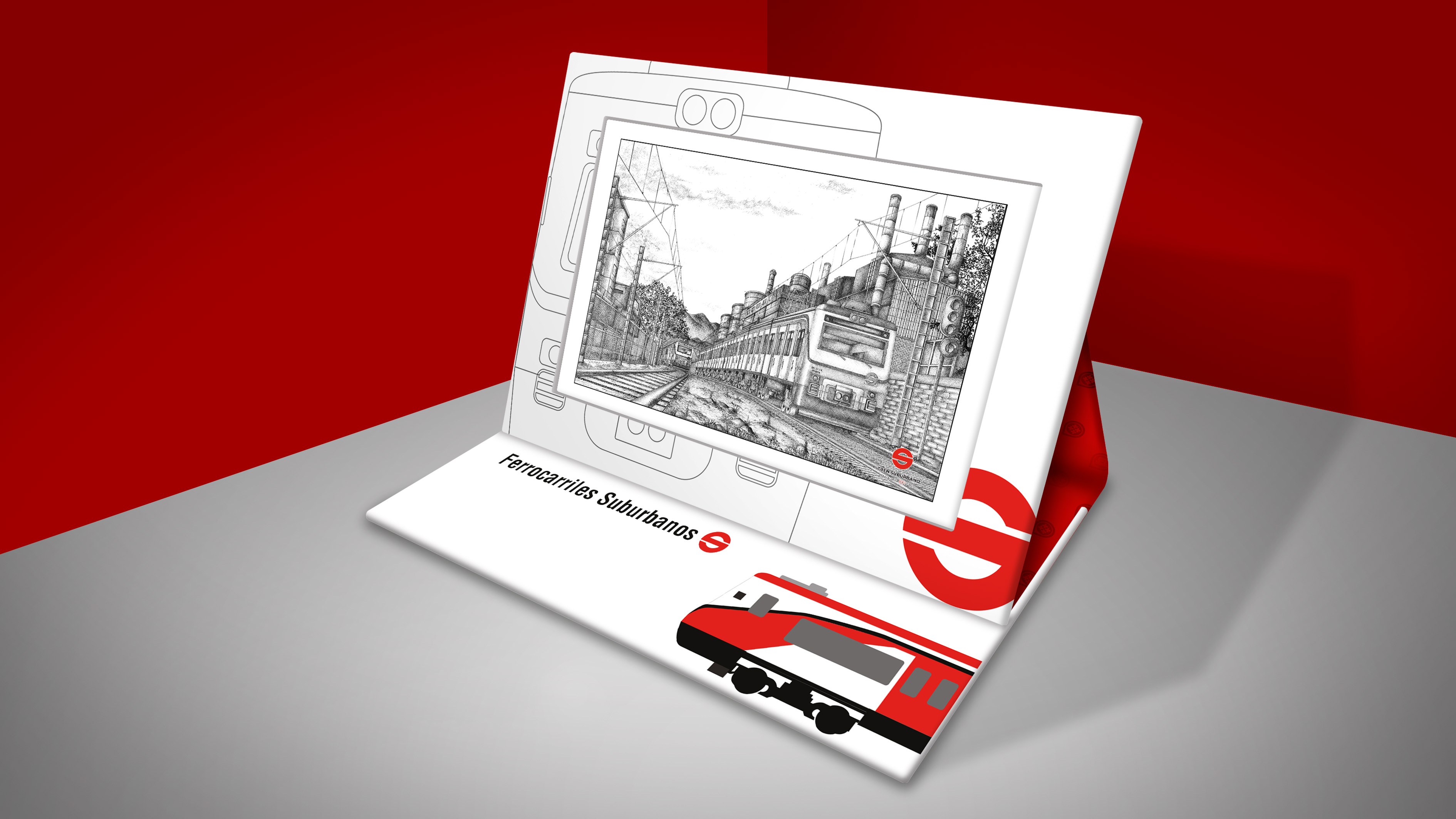 Para Ferrocarriles Suburbanos se elaboraron 2 ilustraciones de los emblemáticos vagones con la técnica tradicional a tinta china, de las que se desprendieron 130 reproducciones cada una protegida en una carpeta hecha de material rígido y personalizada con los respectivos logotipos.